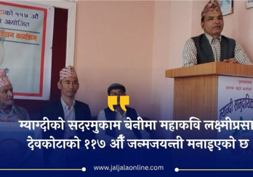 जलजला, माघ-६, पर्वतको जलजला गाउँपालिका वडा न ५ को ग्राम प्रकाश मा. वि. लेखफाटमा मंच निर्माण सम्पन्न भएको छ । जलजला ५ सिरुवारी निवासी सुवेदार भिमवहादुर जि सीले ३ लाख ५० हजारको लागतमा स्व तुलसी देवी स्मृति मञ्च निर्माण गर्नुभएको हो ।आफ्नी धर्मपत्नी स्व तुलसी जिसिको स्मृतिमा निर्माण गर्नु भएको मञ्चको बिहिबार एक कार्यक्रमका विच बिद्दयालयलाइ हस्तान्तरण गरिेएको हो ।