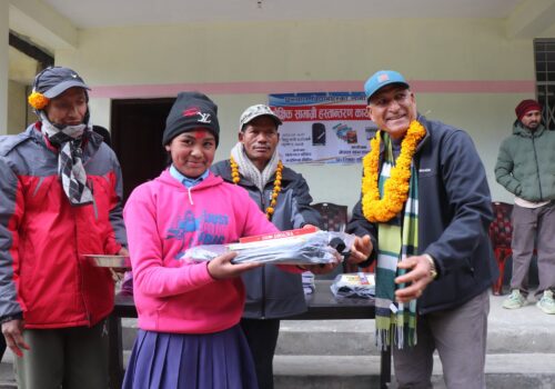 जलजला गाउँपालिका वडा नं-६का अध्यक्ष तिलक बहादुर जिसीले पोशाक वितरण गर्नुभएको हो । अध्यक्ष जिसीले सहयोगी मनका धनिद्वय बिनोद पौडेल र नबिन पौडेललाई धन्यबाद दिंदै समाजमा जसले जसरि सक्छ त्यसरी नै सहयोग गर्दै सामाजिक जीवन चलाउदै जाने र यसले सामाजिक सम्बन्ध बलियो बनाउन सहयोग पुग्ने बताउनुभयो ।