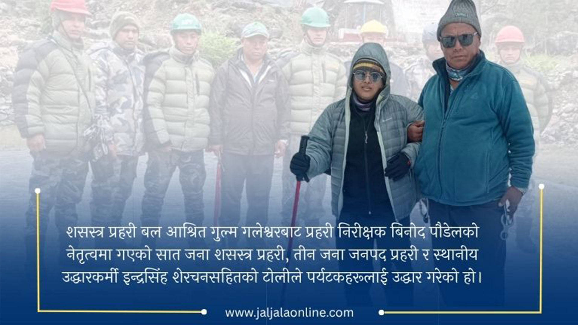 शसस्त्र प्रहरी बल आश्रित गुल्म गलेश्वरबाट प्रहरी निरीक्षक बिनोद पौडेलको नेतृत्वमा गएको सात जना शसस्त्र प्रहरी, तीन जना जनपद प्रहरी र स्थानीय उद्धारकर्मी इन्द्रसिंह शेरचनसहितको टोलीले पर्यटकहरूलाई उद्धार गरेको हो।