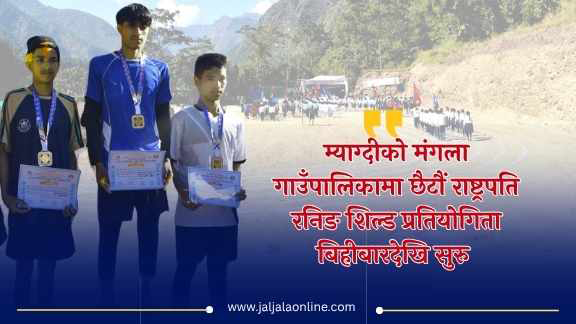 बेनी, कात्तिक-२०, म्याग्दीको मंगला गाउँपालिकामा छैटौं राष्ट्रपति रनिङ शिल्ड प्रतियोगिता बिहीबारदेखि सुरु भएको छ। गाउँपालिका कार्यालयको आयोजनामा मंगला -२ स्थित लाम्पाटा खेलकुद मैदानमा सुरु भएको उक्त प्रतियोगिताको उद्घाटन जिल्ला समन्वय समिति म्याग्दीकी कार्यबाहक प्रमुख डिलकुमारी खत्रीले गर्नुभयो।