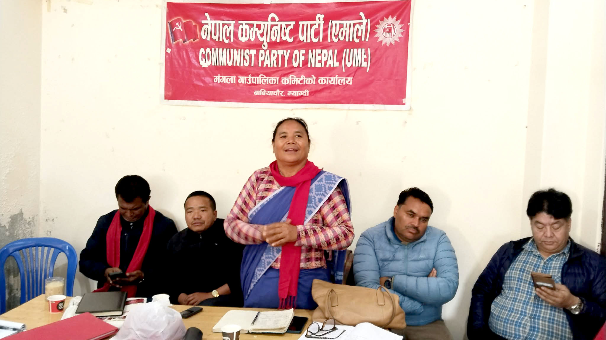 म्याग्दी, पुष-२२, म्याग्दीका मुख्य राजनीतिक दलहरू आगामी फागुन २१ गते हुने आम निर्वाचनको तयारीमा जुटिरहेका छन्। यसैक्रममा नेकपा एमालेले मंगला गाउँपालिकामा विस्तारित बैठक सोमबार सम्पन्न गरेको छ। बैठकमा एमालेकी केन्द्रीय सदस्य नरदेवी पुनको प्रमुख आतिथ्यता रहेको थियो।