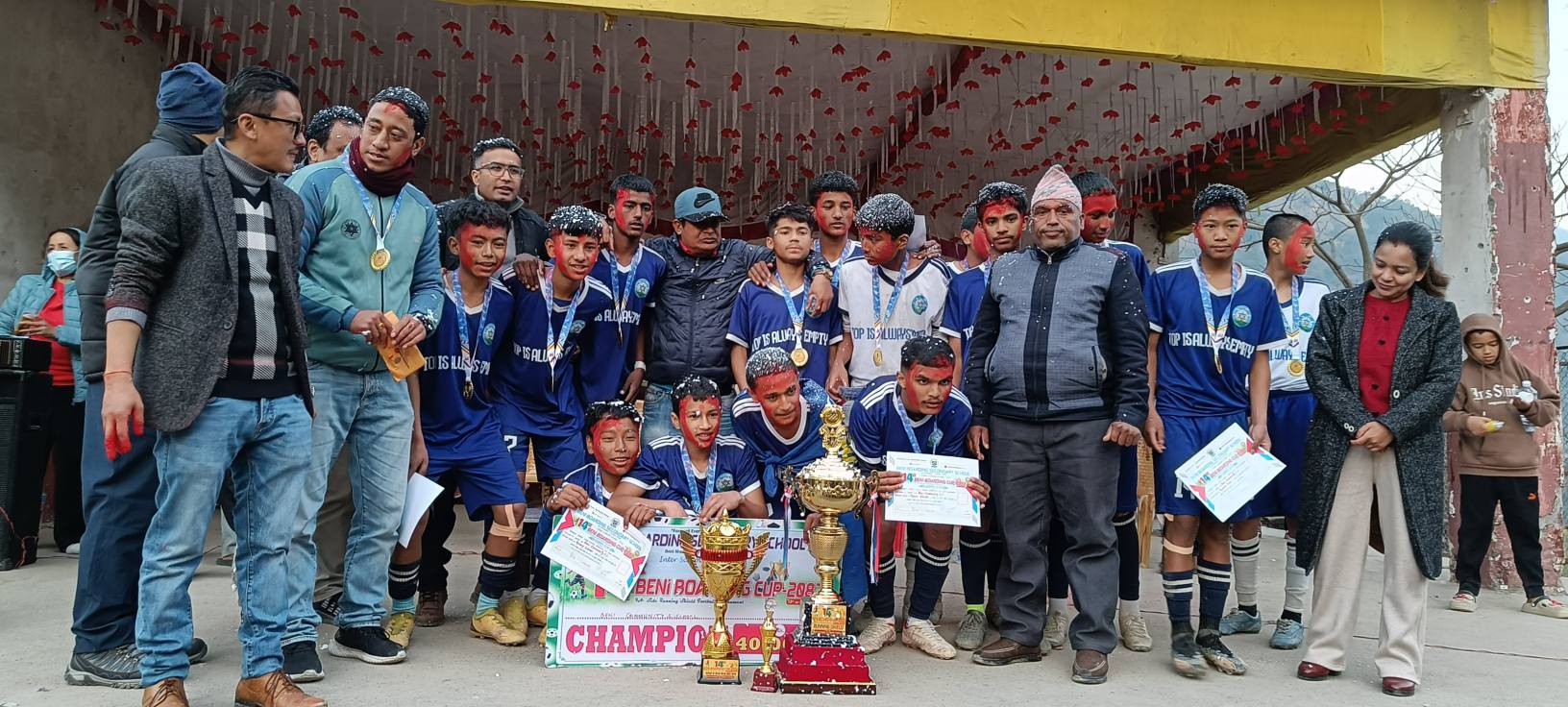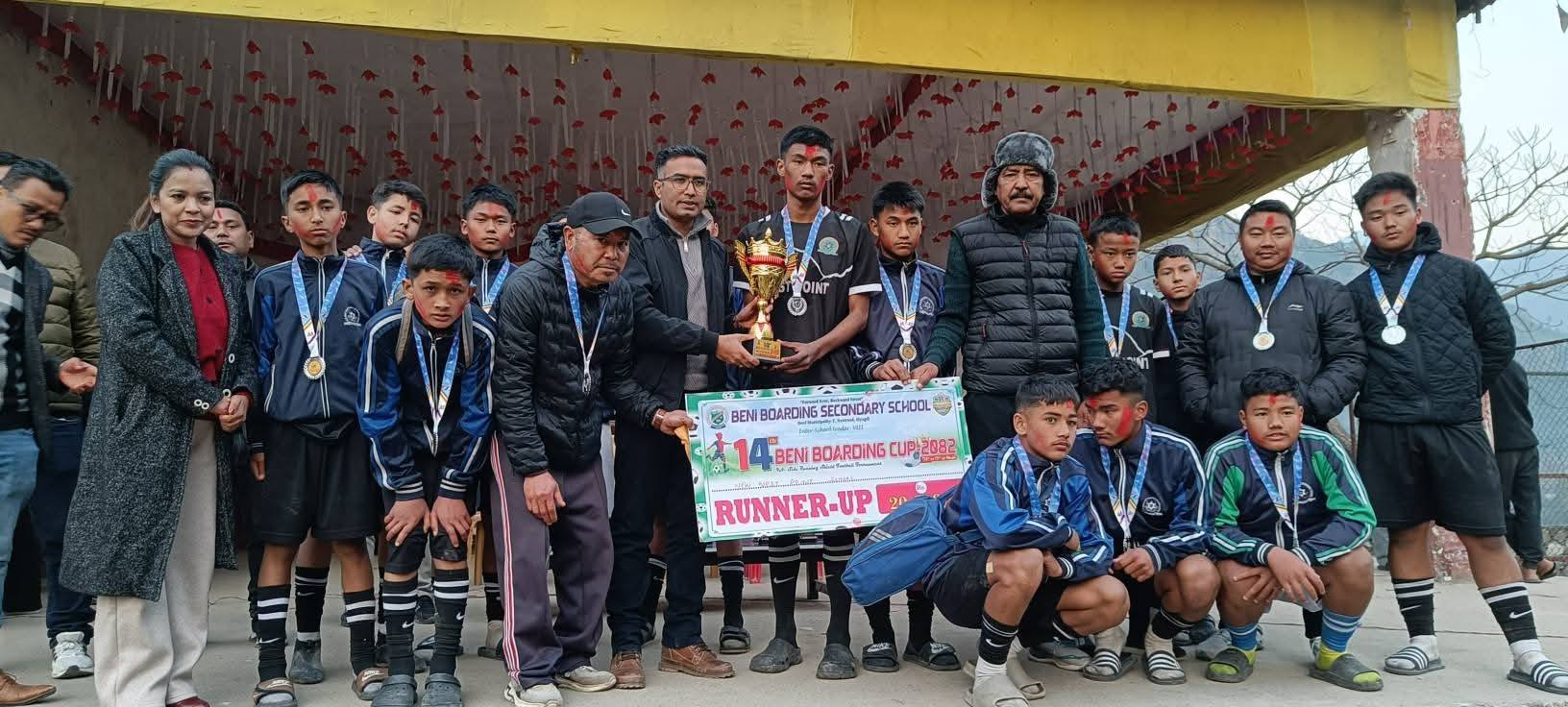 बेनी, माघ-१७, म्याग्दी जिल्लाको सदरमुकाम बेनीमा रहेको बेनी बोर्डिङ सेकेण्डरी स्कुलको आयोजनामा सञ्चालित १४औँ अन्तर–आधारभूत तह बेनी बोर्डिङ कप फुटबल प्रतियोगिताको उपाधि बेनी सामुदायिक माध्यमिक विद्यालयले जितेको छ। शनिबार बेनी खुल्लामञ्चमा सम्पन्न फाइनल खेलमा बेनी सामुदायिक माविले न्यु वेष्टपइन्ट आवासीय माविलाई १–० गोल अन्तरले पराजित गर्दै उपाधि आफ्नो पोल्टामा पारेको हो।