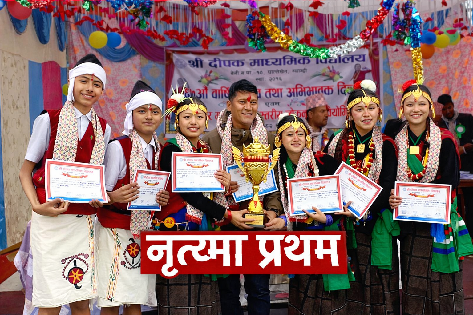 बेनी, माघ-२६, म्याग्दीको पात्लेखेतस्थित दीपक माध्यमिक विद्यालयको ६७औँ वार्षिकोत्सव तथा अभिभावक दिवसको अवसरमा आयोजित जिल्ला स्तरीय अन्तर माध्यमिक विद्यालय नृत्य प्रतियोगितामा बेनीस्थित न्यु वेष्ट पोइन्ट आवासीय माध्यमिक विद्यालय प्रथम भएको छ।